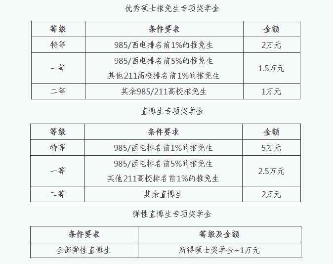 注:①優秀推免生專項獎學金只在入學第一學年評選。未能獲評專項獎學金的考生可參評學業獎學金。