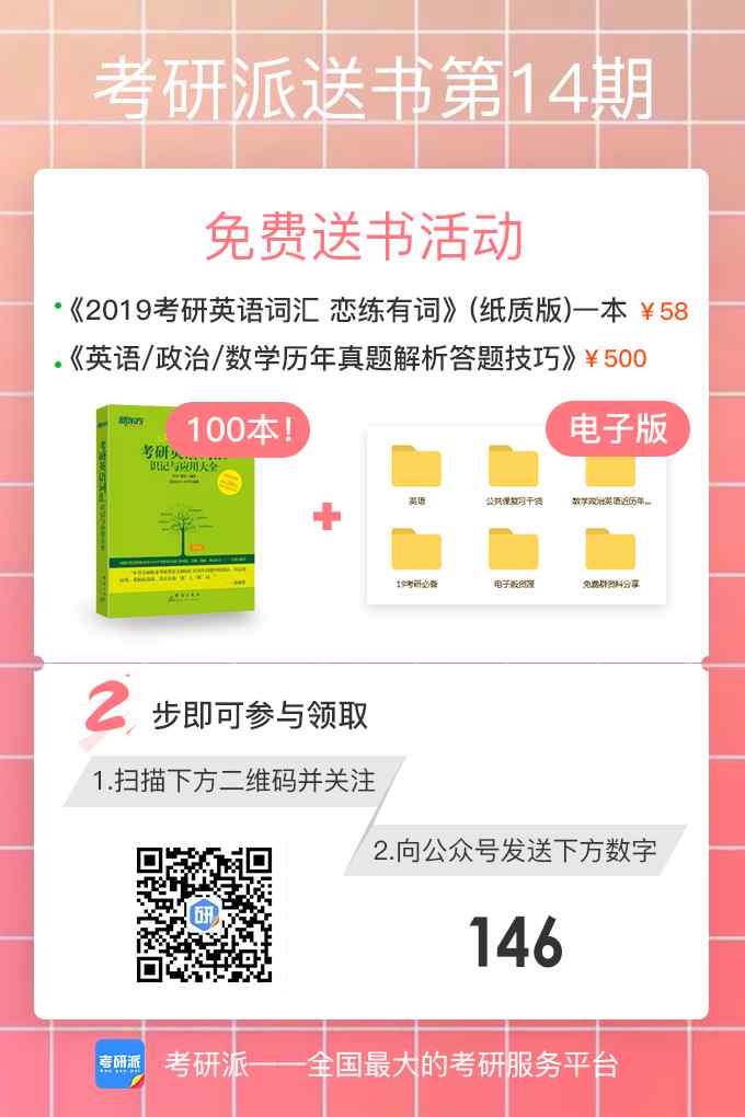 1. 掃描上方圖片二維碼,關注(考研加油站v)公眾號并回復”146“,