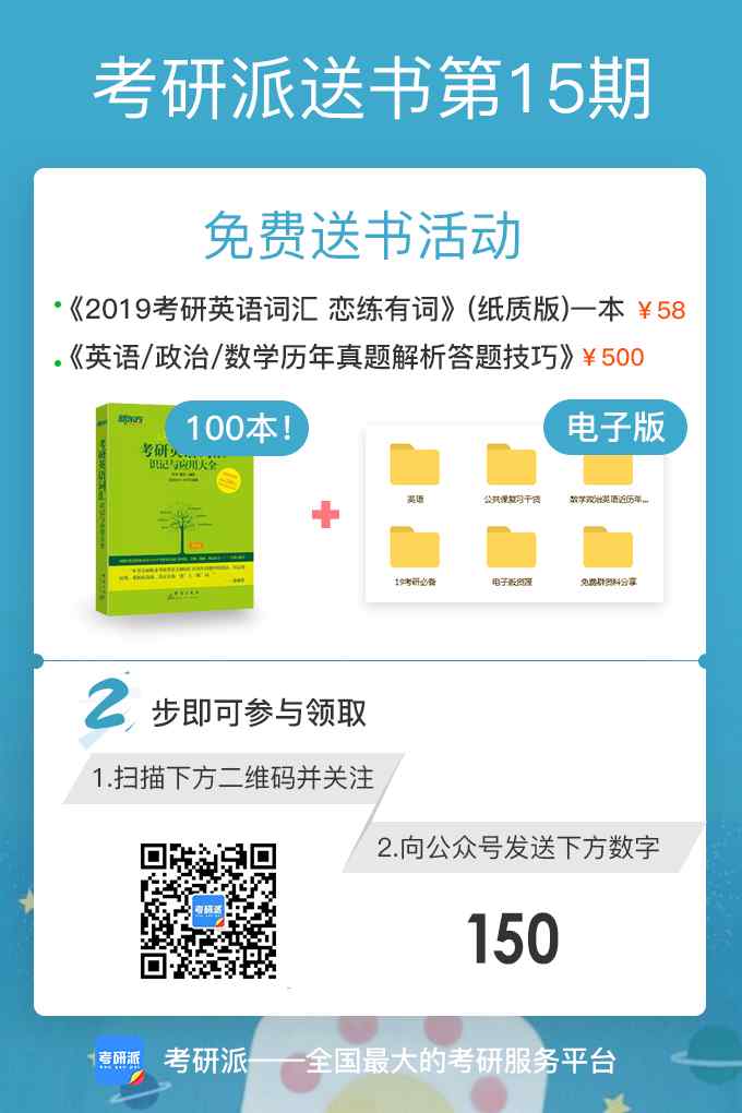 1. 掃描上方圖片二維碼,關注(考研派v)公眾號并回復”150“,即可獲得個人專屬邀請卡片和個人數字編號;