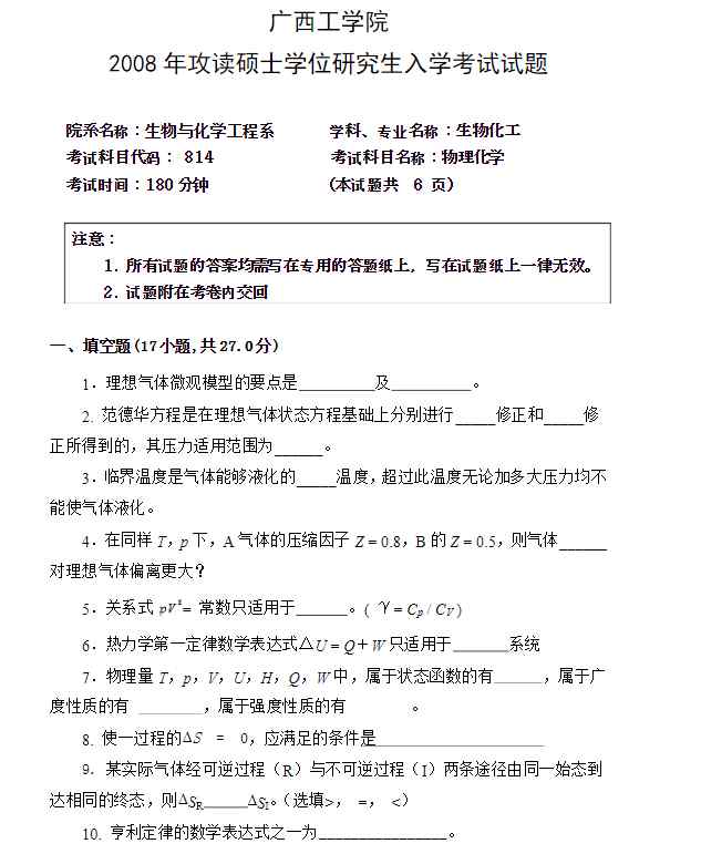 文章來(lái)源:廣西科技大學(xué)2008年生物化工專業(yè)研究生入學(xué)考試真題