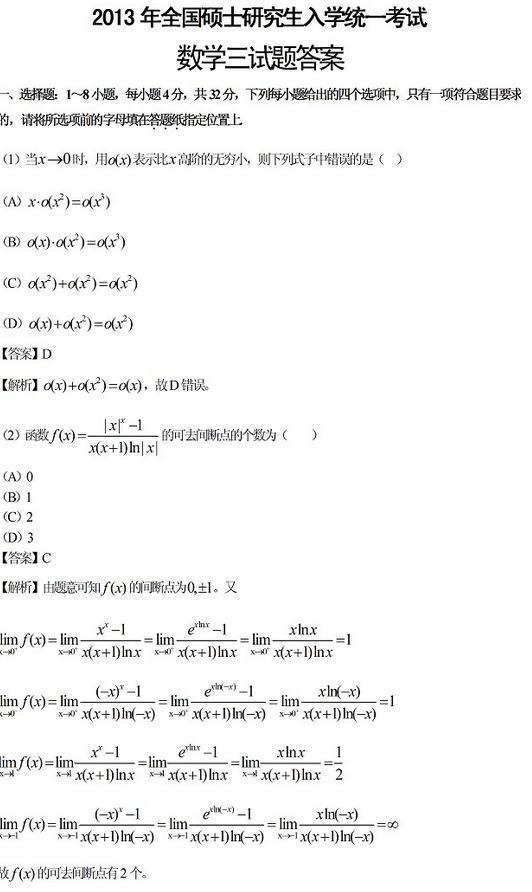 2013考研數(shù)學(xué)三真題詳細(xì)介紹如下,希望可以幫助到您: