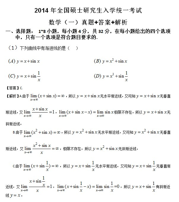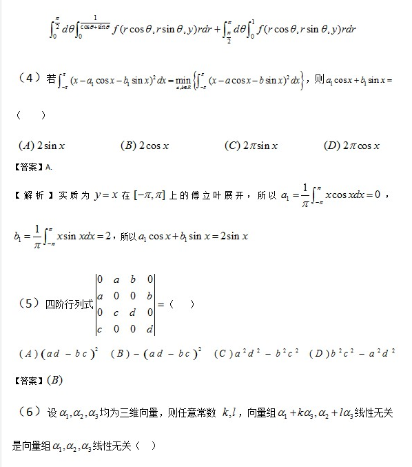 考研派 > 考研報考網 > 考研百科 > 考研數學 > 2014考研數學一真題及答案 2014考研數學一真題及答案 Add考研派研究生微信為你免費答疑 QQ咨詢:【考研派 okaoyan.com】 為大家提供2014考研數學一真題及答案,更多考研資訊請關注我們網站的更新!敬請收藏本站。 2014考研數學一真題及答案詳細介紹如下,希望可以幫助到您: 文章來源:2014考研數學一真題及答案上一頁 下一頁 推薦閱讀 2014年考研數學三真題解析 2014年考研數學三真題 2014年考研數學三答案 2014年考研數學三 2014年考研數學二真題 2014年考研數學二 2014年考研數學一真題及答案 2014年考研數學一真題 2014年考研數學一難度 2014年考研數學一 相關考研分類 復試分數線考研英語二考研真題下載考研復試注意事項考研調劑考研數學推免研究生考研如何選擇導師就業前景考研國家線考研英語一考研熱門專業考研資料研究生招生信息網招生簡章高分考研考研常見問題考研成績查詢考博信息17年考研報名考研視頻考研不考數學考研究生條件考研時間考研時間安排考研大綱考研政治大綱考研英語大綱考研數學大綱考研西綜大綱考研難嗎研究生成績公布研究生學費在職研究生研究生獎學金考研網官方網站考研政治考研英語閱讀考研英語考研網 熱門考研院校 安徽大學 北京大學 北京工業大學 北京航空航天 北京化工大學 北京交通大學 北京科技大學 北京理工大學 北京林業大學 北京師范大學 北京體育大學 北京外國語 北京郵電大學 北京中醫藥 長安大學 重慶大學 大連海事大學 大連理工大學 電子科技大學 第二軍醫大學 第四軍醫大學 東北大學 東北林業大學 東北農業大學 東北師范大學 東華大學 東南大學 復旦大學 福州大學 廣西大學 貴州大學 國防科技大學 中國科學院 哈爾濱工業大學 河北工業大學 合肥工業大學 河海大學 華北電力大學 華東理工大學 華東師范大學 華東政法大學 華南理工大學 華南師范大學 華中科技大學 華中農業大學 華中師范大學 湖南大學 湖南師范大學 江南大學 吉林大學 暨南大學 蘭州大學 遼寧大學 內蒙古大學 南昌大學 南京大學 南京航空航天 南京理工大學 南京農業大學 南京師范大學 南開大學 清華大學 山東大學 上海財經大學 上海大學 上海交通大學 上海外國語 陜西師范大學 深圳大學 四川大學 四川農業大學 蘇州大學 太原理工大學 天津大學 天津醫科大學 同濟大學 對外經濟貿易 武漢大學 武漢理工大學 廈門大學 西安電子科技 西安交通大學 西北大學 西北工業大學 西北農林科技 西南財經大學 西南大學 西南交通大學 新疆大學 延邊大學 云南大學 浙江大學 鄭州大學 中國傳媒大學 中國地質大學 中國地質大學 中國海洋大學 中國科學技術 中國礦業大學 中國農業大學 中國人民大學 中國石油大學 中國石油大學 中國藥科大學 中國政法大學 中南財經政法 中南大學 中山大學 中央財經大學 中央民族大學 中央音樂學院