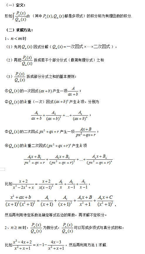 【考研派 okaoyan.com】 為大家提供2020考研數學大綱解析之有理函數的不定積分,更多考研資訊請關注我們網站的更新!敬請收藏本站。