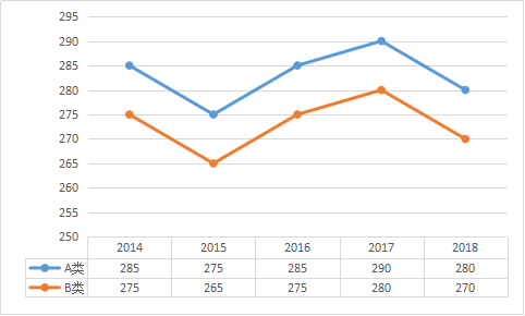理學(xué)2014-2018年國(guó)家線走勢(shì)分析