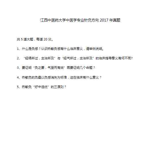 考研派 > 考研院校 > 江西 > 江西中醫(yī)藥大學(xué) > 考研真題 > 江西中醫(yī)藥大學(xué)中醫(yī)學(xué)專業(yè)針灸方向2017年考研真題 江西中醫(yī)藥大學(xué)中醫(yī)學(xué)專業(yè)針灸方向2017年考研真題 【考研派】為大家提供江西中醫(yī)藥大學(xué)中醫(yī)學(xué)專業(yè)針灸方向2017年考研真題,更多考研資訊請關(guān)注我們網(wǎng)站的更新!敬請收藏本站。 文章來源:江西中醫(yī)藥大學(xué)中醫(yī)學(xué)專業(yè)針灸方向2017年考研真題 推薦閱讀 考研真題最近更新2016年江西中醫(yī)藥大學(xué)經(jīng)濟與管理學(xué)院705管理學(xué)考研真題2017年江西中醫(yī)藥大學(xué)保險學(xué)考研復(fù)試考研真題江西中醫(yī)藥大學(xué)中醫(yī)學(xué)專業(yè)針灸方向2017年考研真題2014年江西中醫(yī)藥大學(xué)碩士研究生入學(xué)考試真題江西中醫(yī)藥大學(xué)中醫(yī)基礎(chǔ)理論2017考研真題 相關(guān)分類 研究生院招生簡章聯(lián)系方式考研復(fù)試成績查詢研究生專業(yè)考研報錄比考研分?jǐn)?shù)線專業(yè)排名參考書目研究生導(dǎo)師考研問題考研真題考研經(jīng)驗