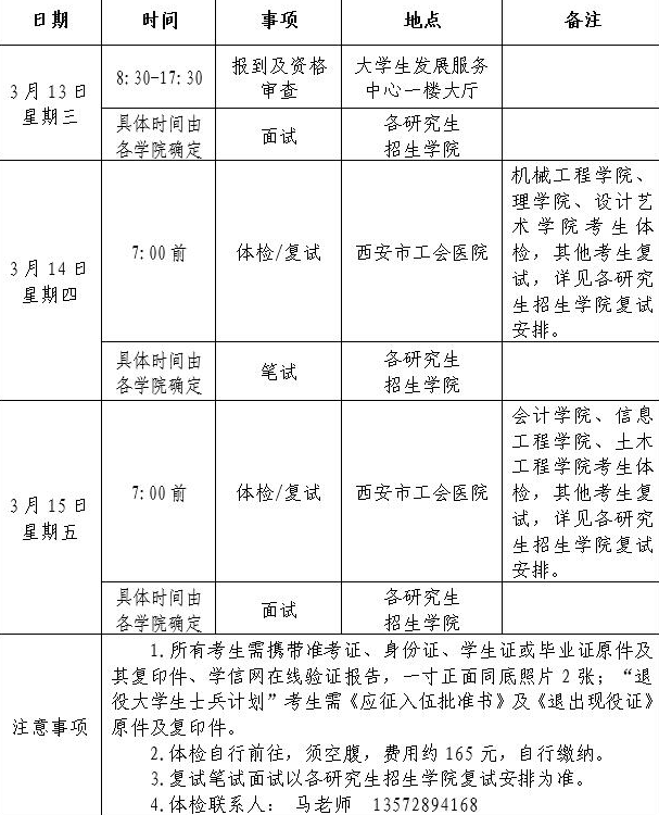 西京學(xué)院碩士研究生考研復(fù)試時(shí)間安排