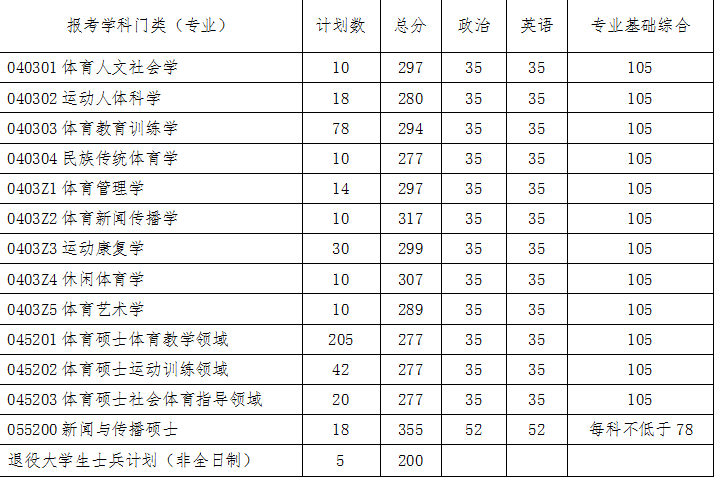 2020沈陽體育學院考研分數線(研究生復試分數線) |