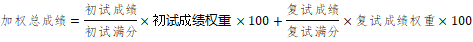 復試結束后,各學院將匯總考生各科目復試成績,并按照學校規定在各學院網站公示。加權總成績計算方式: