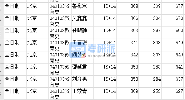 北京師范大學是一個不錯的學校,深受考研人的追捧,本校每年會有數千名研究生招生的名額,研究生報考錄取比在3:1左右,難度中等,部分熱門的研究生專業研究生報考錄取比會更高一點,請各位準備報考北京師范大學教育史考研的同學注意: 北京師范大學教育史研究生錄取分數線(或稱考研分數線)的數據。因為每年都有不少人報考北京師范大學教育史考研,競爭激烈,所以強烈建議各位準備考北京師范大學教育史研究生的考研人準備一些基本的歷年考研真題、 研究生學姐學長的筆記、考研經驗等等(考研派有考研經驗頻道,也有考研派微信公眾號、考研派APP等產品平臺,里面有不少研究生會免費解答你的考研問題,助你考研一臂之力),另外考研派也會為大家北京師范大學教育史考研的參考書目、考研大綱、研究生招生咨詢電話等聯系方式。希望你考取北京師范大學 教育史專業研究生,考研是個孤獨的事情,需要耐得住寂寞,祝愿各位考研的學生好好復習備考,來年上個985/211,實現自己的名校研究生夢想。