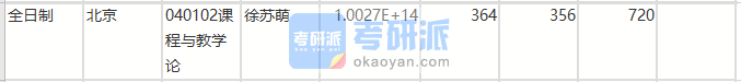 北京師范大學課程與教學論2020年研究生錄取分數線