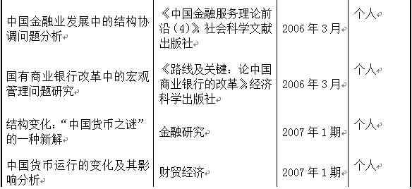 《中國金融結構的理論與對策研究》,教育部人文社會科學研究“十五”規劃研究項目;