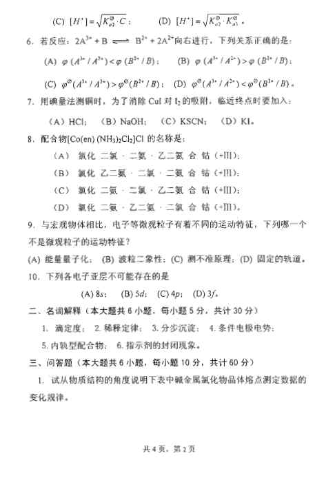 - 南開(kāi)大學(xué)分析化學(xué)考研