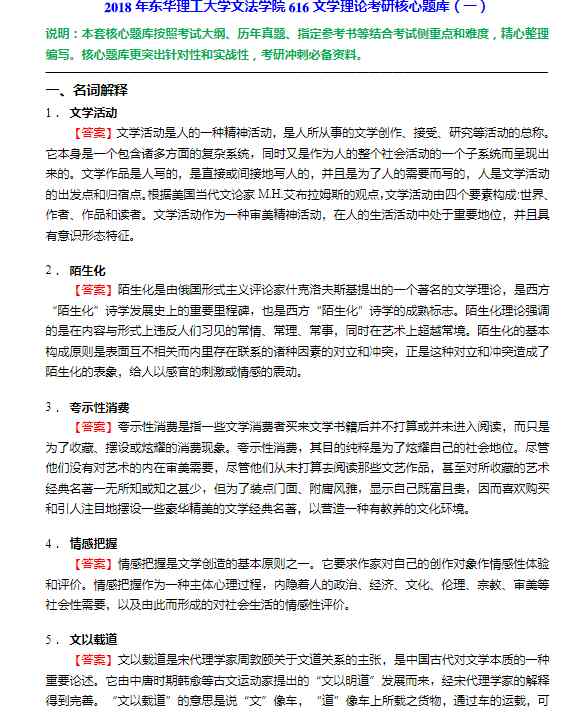 2018年東華理工大學文法學院616文學理論考研核心題庫