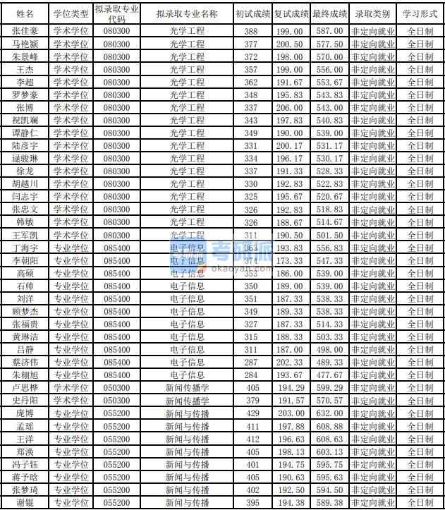 東華大學光學工程2020年研究生錄取分數線
