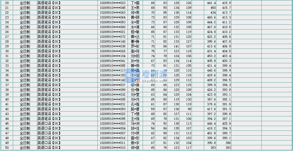 以下是2020年的錄取名單,成績從高到底,供準(zhǔn)備報(bào)考該專業(yè)研究生的同學(xué)參考: