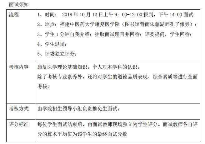 福建中醫(yī)藥大學(xué)康復(fù)醫(yī)學(xué)院碩士生推免復(fù)試方案