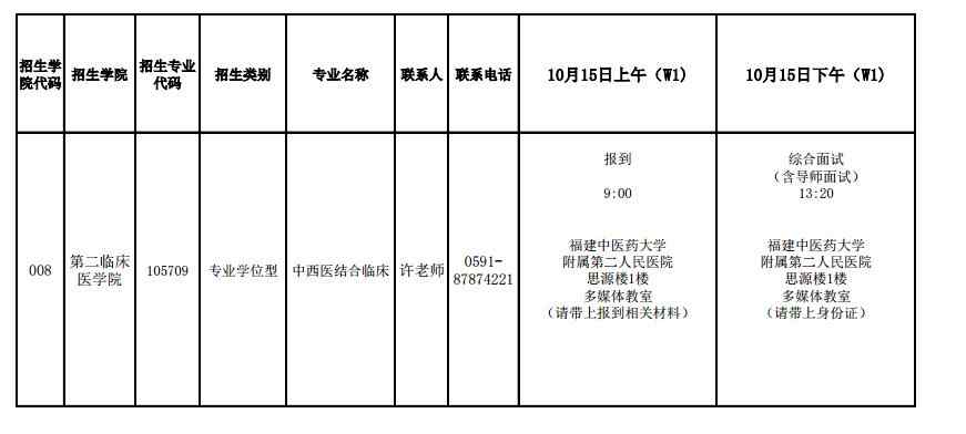 接收推免生及醫學長學制轉段碩士入學復試日程表(第二臨床醫學院)