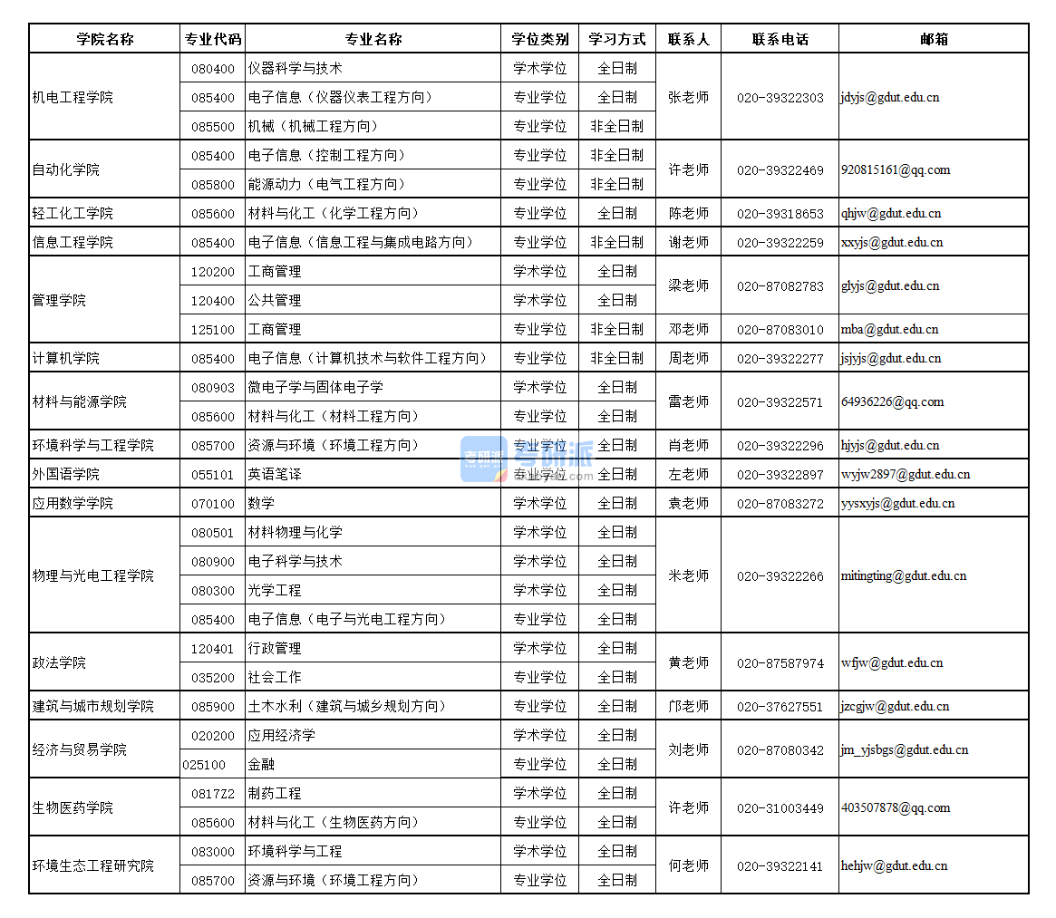- 通訊地址:廣州市番禺區廣州大學城外環西路100號廣東工業大學行政樓315研究生招生辦公室