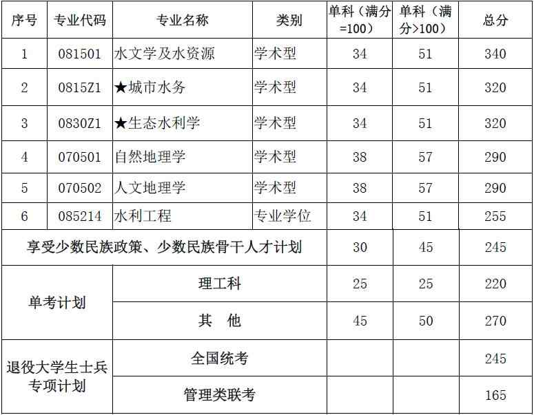 水文水資源學院2018年碩士研究生進入復試成績基本要求: