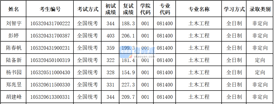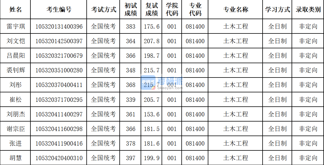以下是2020年的錄取名單,成績從高到底,供準備報考該專業研究生的同學參考: