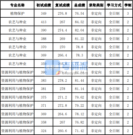 考試科目: | 1 101 思想政治理論 2 201 英語一 3 670 植物生理學 4 976 植物生物化學 復試科目:植物病理學或 普通昆蟲學或植物化學保 護 |