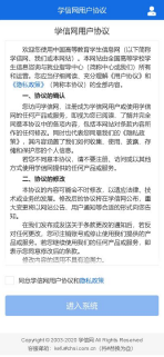 進(jìn)入系統(tǒng)登錄頁面,使用手機(jī)號(hào)或身份證號(hào)、密碼,即可登錄。登錄后,請(qǐng)認(rèn)真仔細(xì)閱讀 學(xué)信網(wǎng)用戶協(xié)議和隱私政策,勾選“同意”方可進(jìn)入系統(tǒng)。