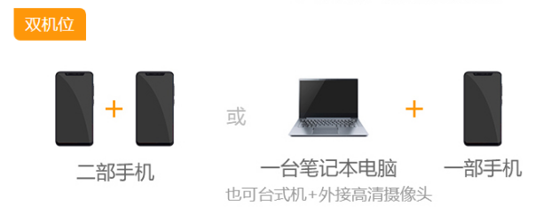 主機(jī)位為智能手機(jī)或電腦,用于面試。輔助機(jī)位(二機(jī)位)為智能手機(jī),用于監(jiān)控面試環(huán)境。