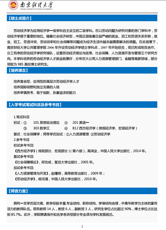 2018年南京財經大學勞動經濟學碩士研究生招生簡章