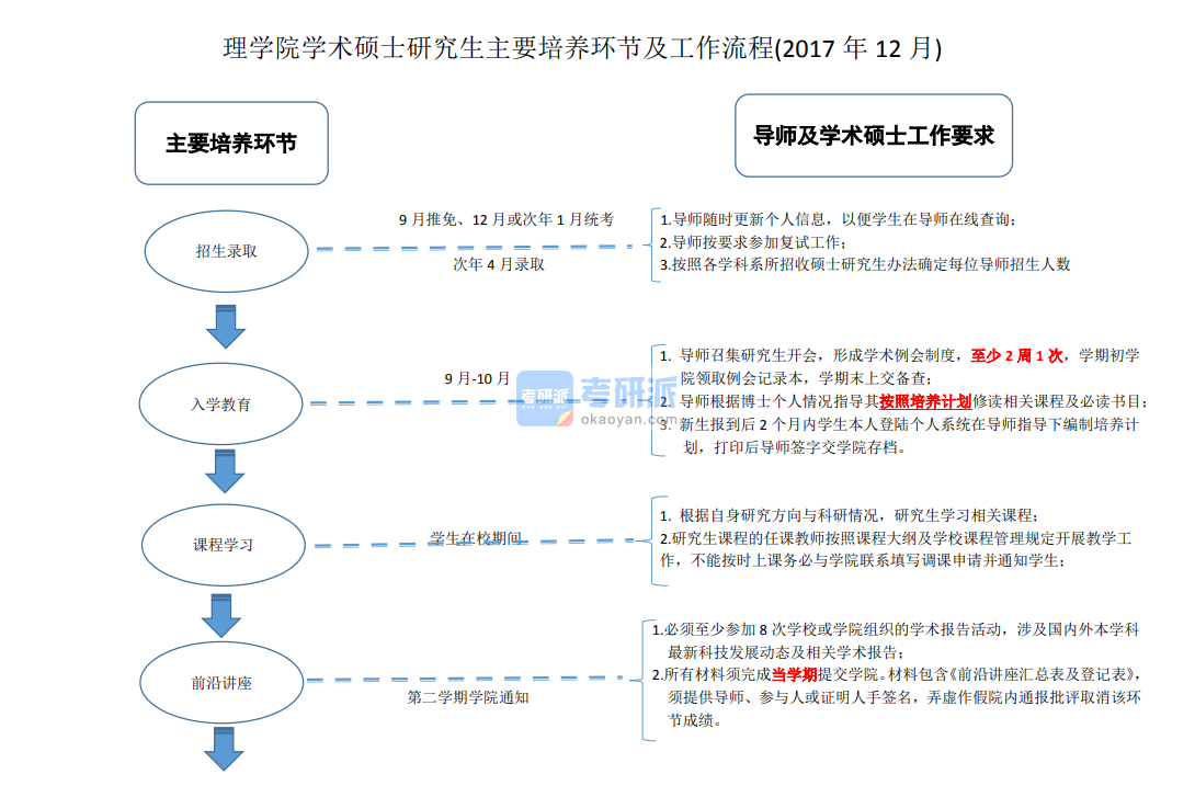 北京交通大學理學院學術碩士研究生主要培養環節及工作流程