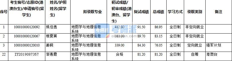 北京大學地圖學與地理信息系統2020年研究生錄取分數線