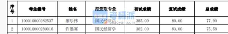 北京大學(xué)國(guó)民經(jīng)濟(jì)學(xué)2020年研究生錄取分?jǐn)?shù)線