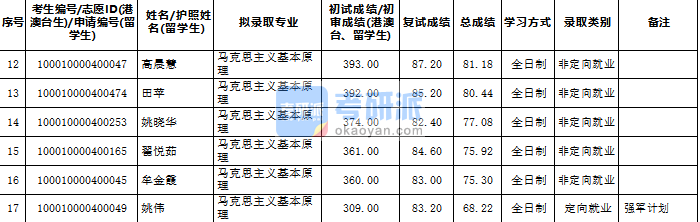 北京大學馬克思主義基本原理2020年研究生錄取分數線