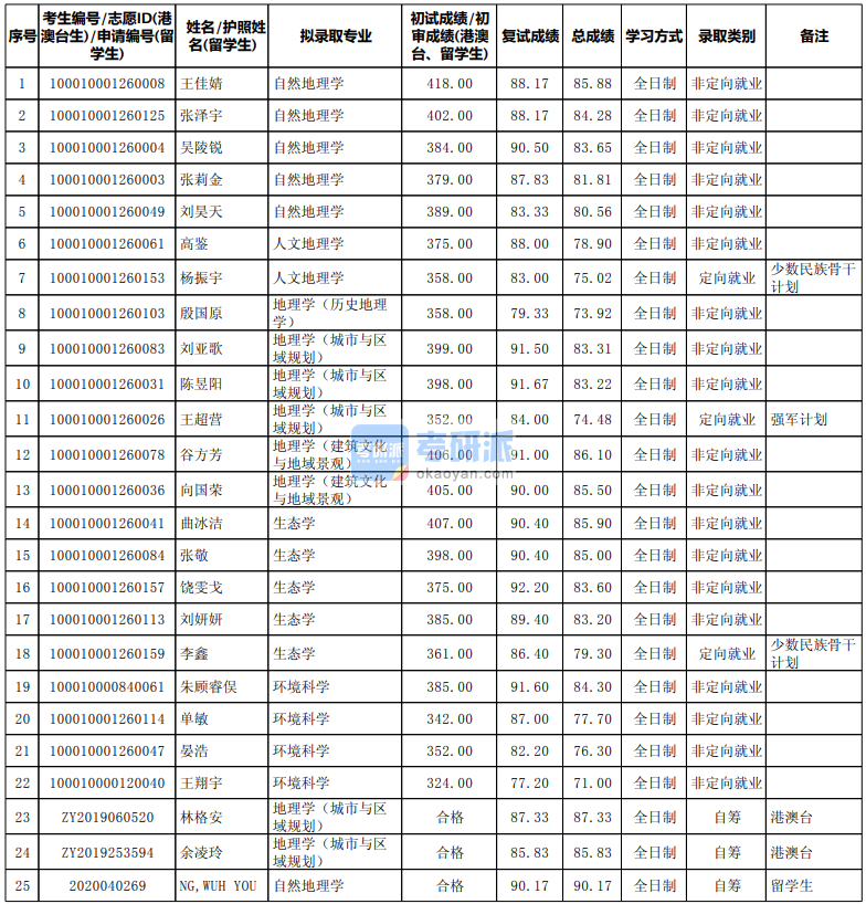 北京大學(xué)環(huán)境科學(xué)2020年研究生錄取分?jǐn)?shù)線