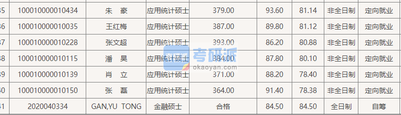 以下是2020年的錄取名單,成績從高到底,供準備報考該專業研究生的同學參考: