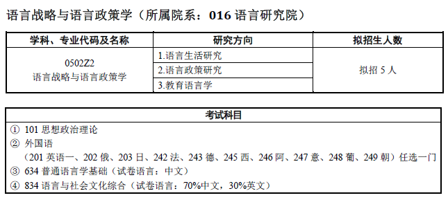 - 上海外國語大學語言研究院語言戰略與語言政策學保研