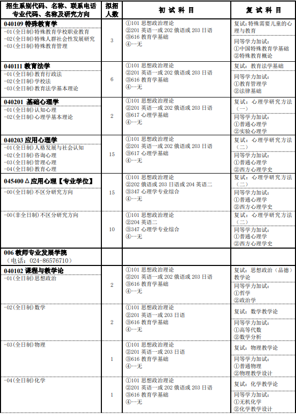 沈陽師范大學:19學院招生目錄2(教育科學學院、教育專業發展學院、學前與初等教育學院)