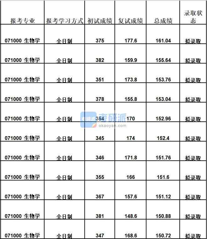 - 天津大學生物學考研分數線