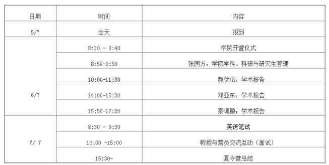 學院會在夏令營活動期間開展優秀營員的選拔考核工作。優秀營員選拔考核分二個部分進行,即:專業筆試及綜合面試。