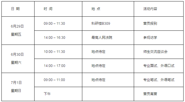 夏令營于2018年6月29日-7月1日在中國政法大學(xué)學(xué)院路校區(qū)舉辦,計劃招收30名營員。