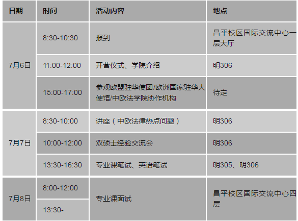 2018年中國政法大學中歐法學院碩士研究生暑期夏令營推免活動招生簡章