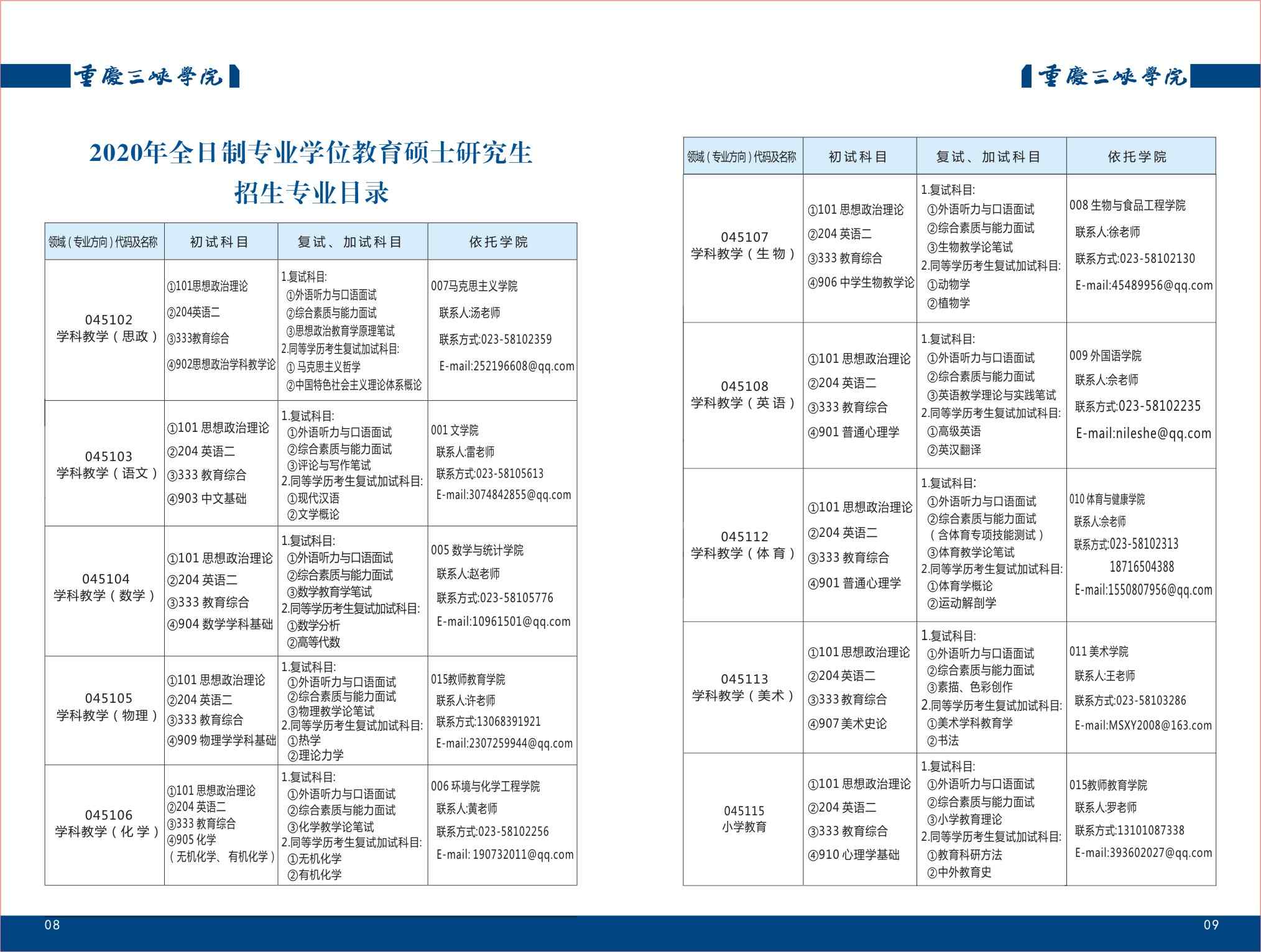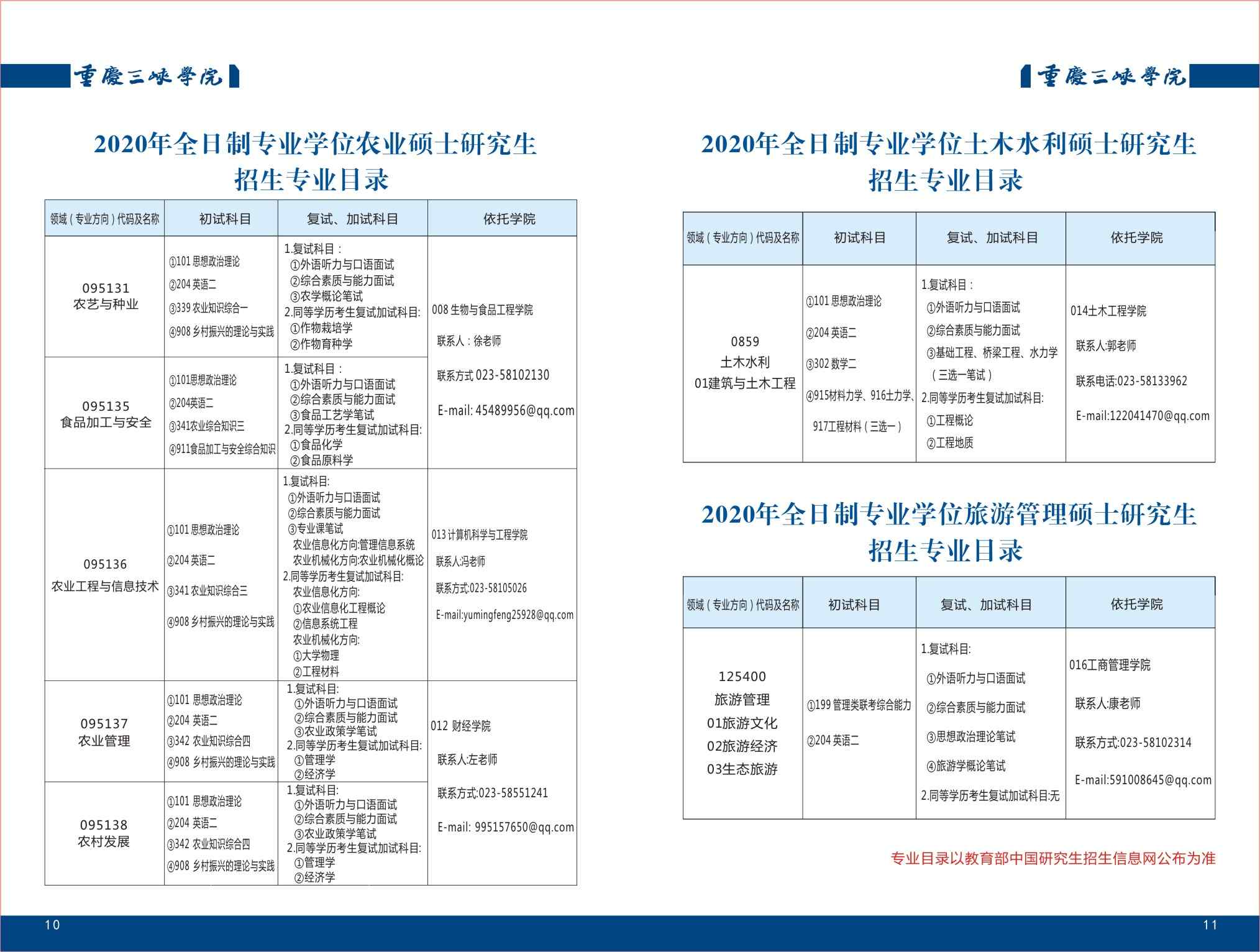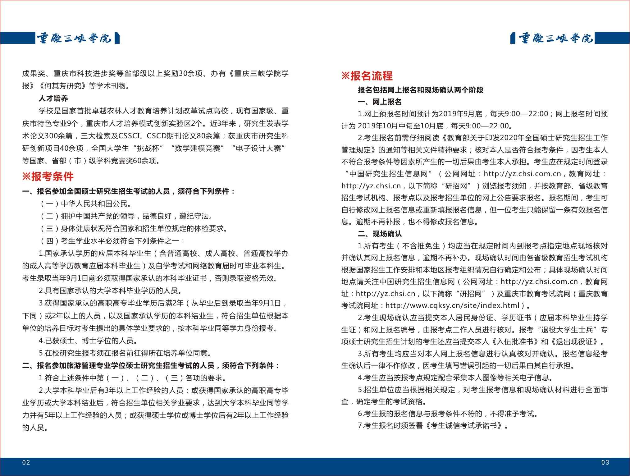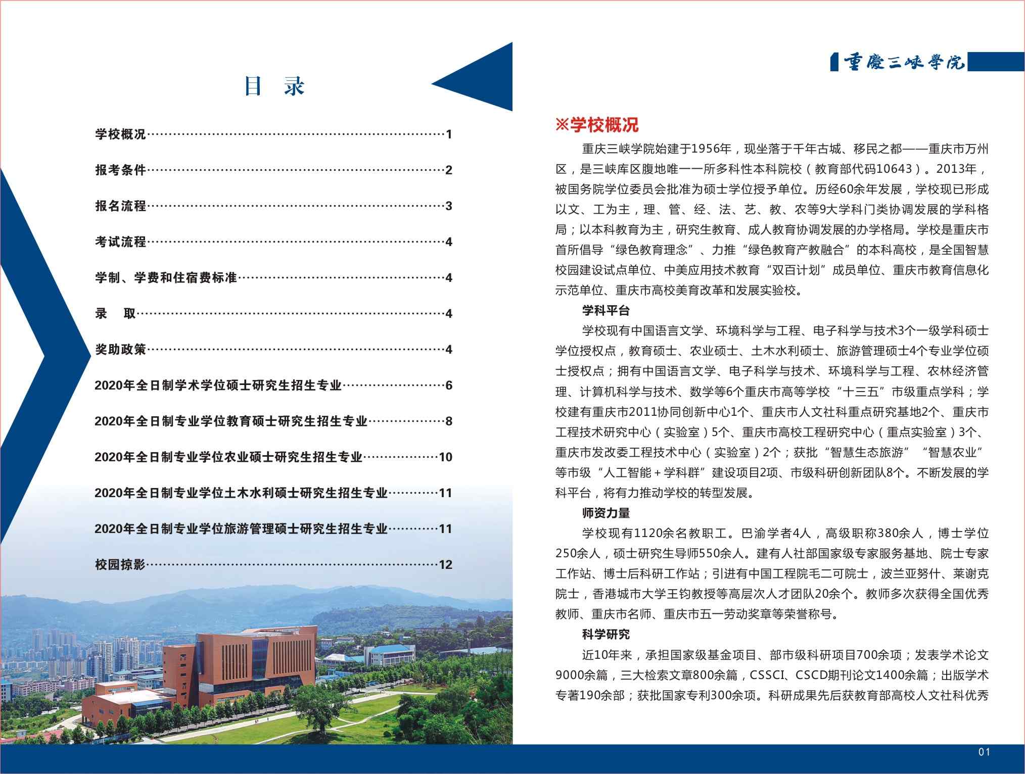 重慶三峽學院2021年碩士研究生招生專業目錄2020年重慶三峽學院碩士研究生招生調劑公告