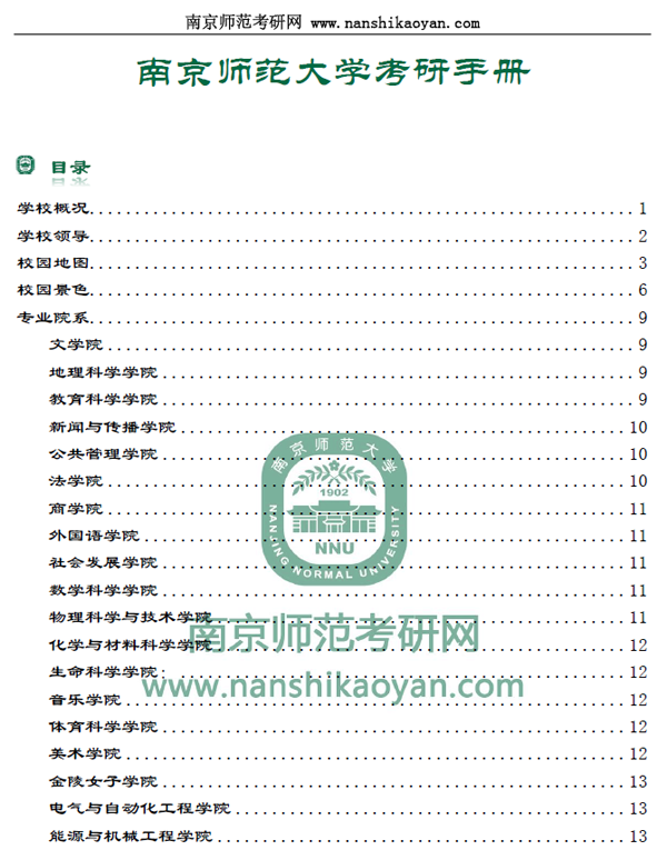 內容手冊里面包含各種南京師范大學的考研信息:校園風景、各學院概況、考研報錄比、考研分數線、研究生招生電話、考研經驗、考研資料和輔導的購買方式、南京師范大學考研QQ群、學姐微信號等信息,還有學姐學長定期答疑QQ群號。