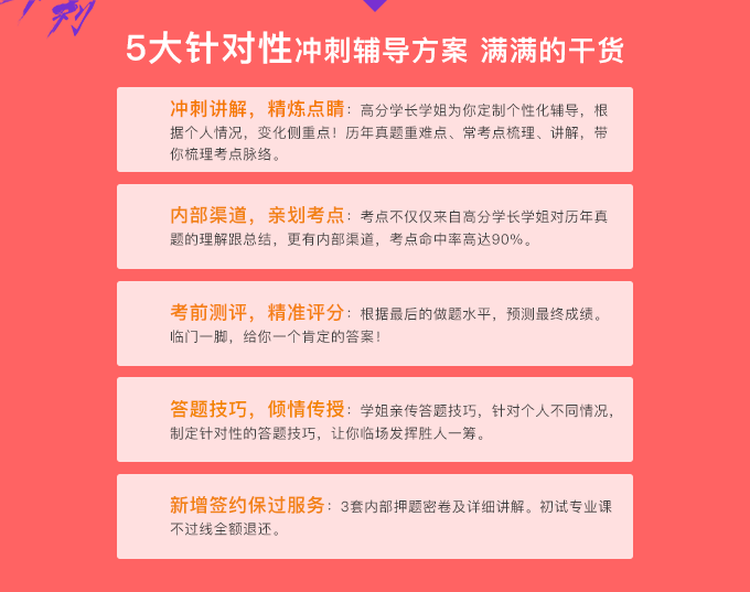 專業(yè)課資料作為考研核心資料,部分專業(yè)重題概率極高,必須吃透,反復(fù)復(fù)習(xí)。如有需要高分研究生學(xué)長一對一輔導(dǎo)的,也可聯(lián)系我們安排。