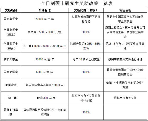 注:以上所列獎助標準及比例如有與有關文件沖突,均以國家、省、學校下發的最新政策文件為準。
