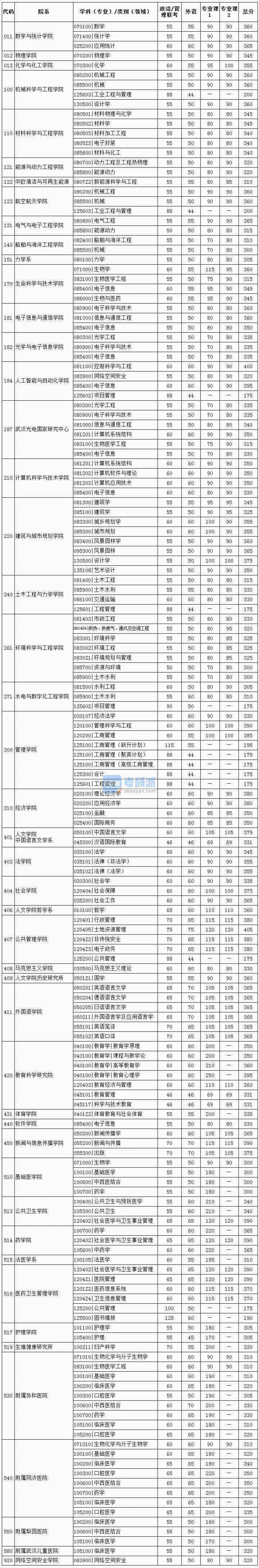 2020年華中科技大學(xué)碩士研究生招生復(fù)試分?jǐn)?shù)線