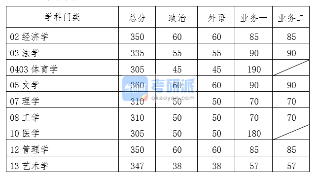 類型 | 報考學科門類(專業) | 政治 | 外語 | 業務一 | 業務二 | 總分 |