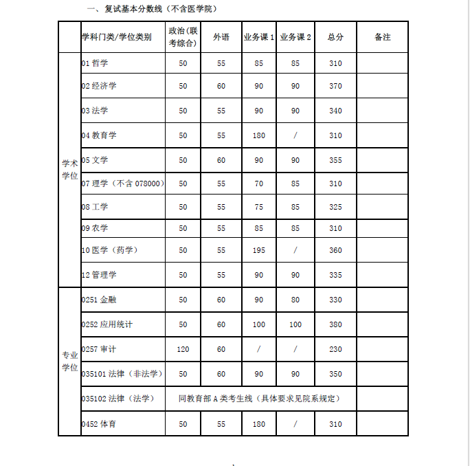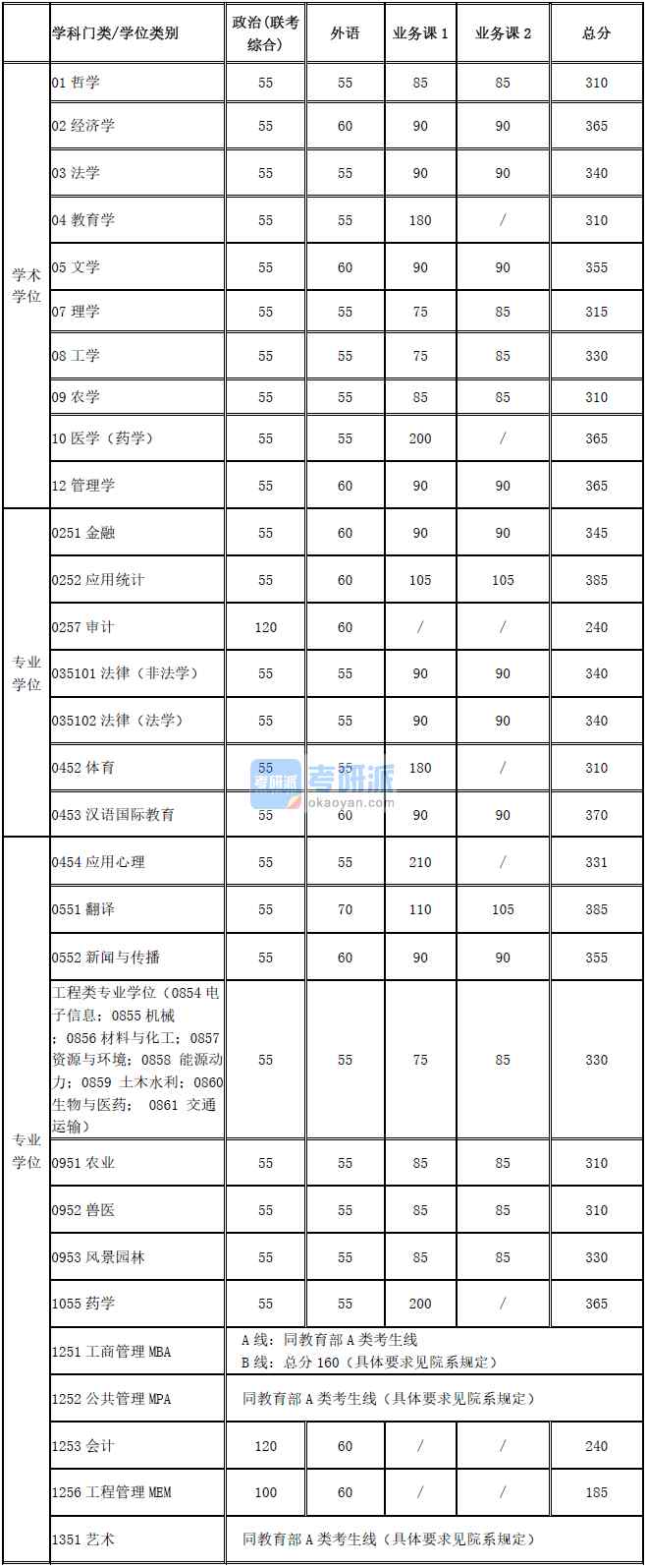 一、復試基本分數(shù)線(不含醫(yī)學院)