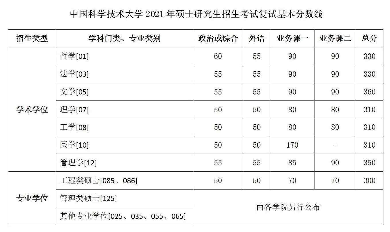 2021中國科學(xué)技術(shù)大學(xué)考研分?jǐn)?shù)線(研究生復(fù)試分?jǐn)?shù)線)