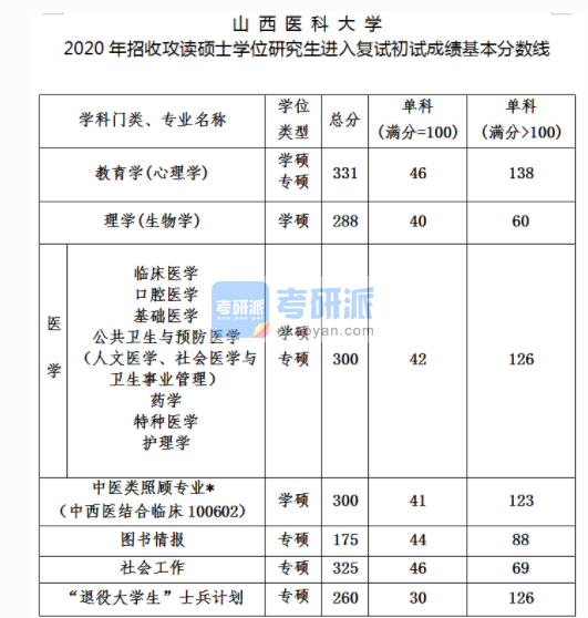 2020山西醫(yī)科大學(xué)考研分?jǐn)?shù)線(研究生復(fù)試分?jǐn)?shù)線)