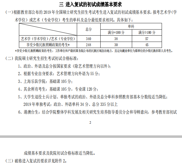 2019上海音樂學(xué)院考研復(fù)試研究生分?jǐn)?shù)線